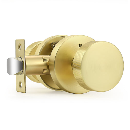 Probrico Brushed Brass/Black Door Knobs, Round Interior Door Knobs with Round Rosette, Privacy/Passage Door Knob for Bedroom Closet Hallway