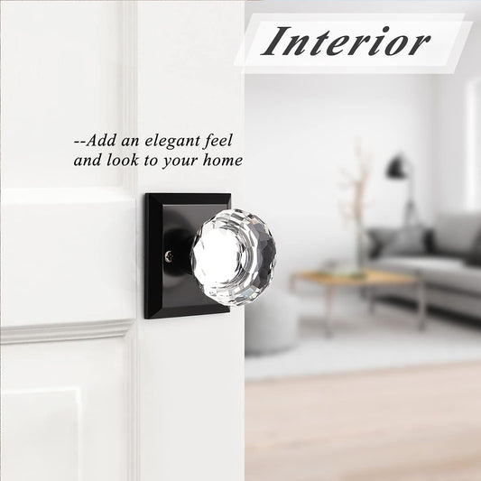 Probrico Black Door Knob Set, Keyless Interior Door Knobs with Round Diamond Shape Crystal Glass, Heavy Duty Passage Door Knobs for Closet and Hall Doors C10AO