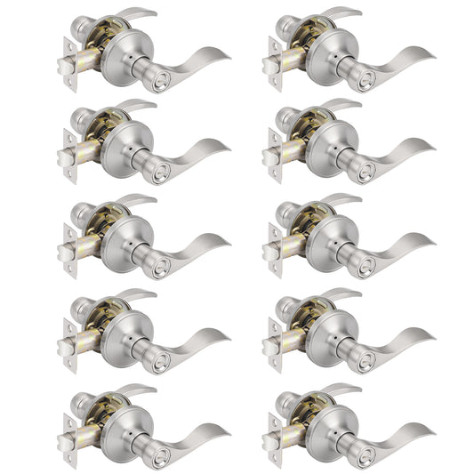 Probrico Bed/Bath Door Levers Wave Style Handles in Satin Nickel Wholesale Privacy Door Locks (10 Pack)