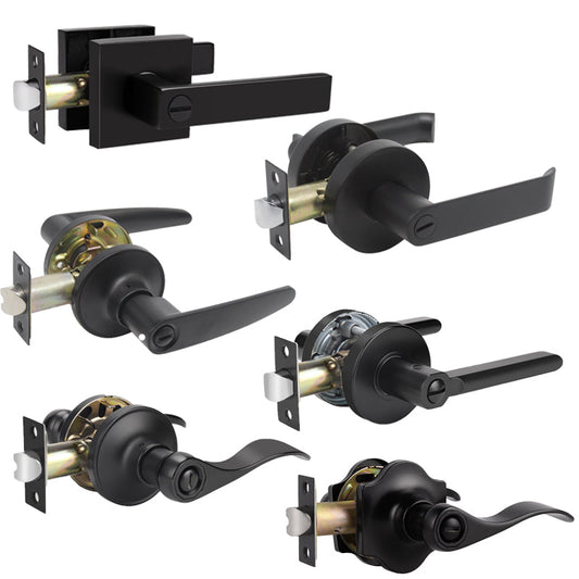 Probrico Bedroom and Bathroom Handles Lock Black Finished Privacy Door Lever 6 Packs