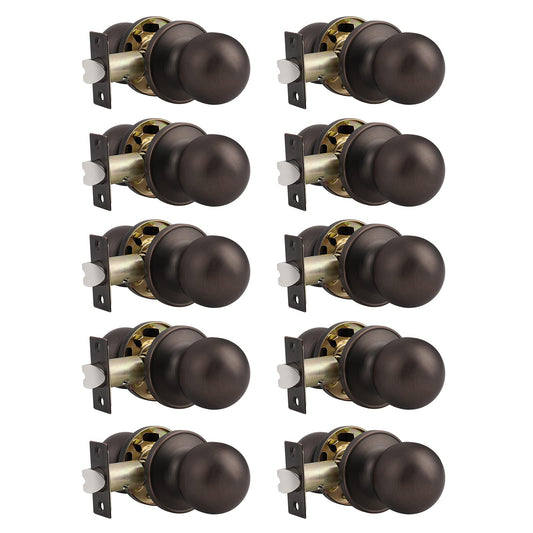 Probrico Ball Knob with Rosette Oil Rubbed Bronze Finish Passage Door Knobs 10 Packs