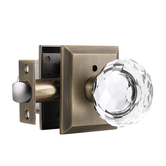 Probrico Antique Brass Diamond Crystal Glass Door Knobs Round Rosette Privacy/Passage Door Lock DLC10AOAB
