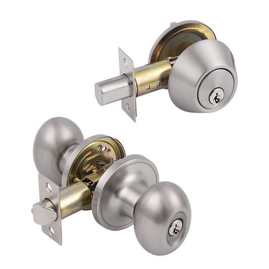 Probrico Oval Egg Entry Door Knobs with Single Cylinder Deadbolt Same Keys for Office Entrance Door Lock Set, in Brushed Nickel Finish, 1 Pack