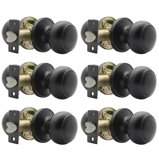 Probrico Matte Black Bed/Bath Door Knobs, Privacy Door Knobs for Bedroom Bathroom, Interior Door Knobs Keyless Stainless Steel Locksets (6 Pack)