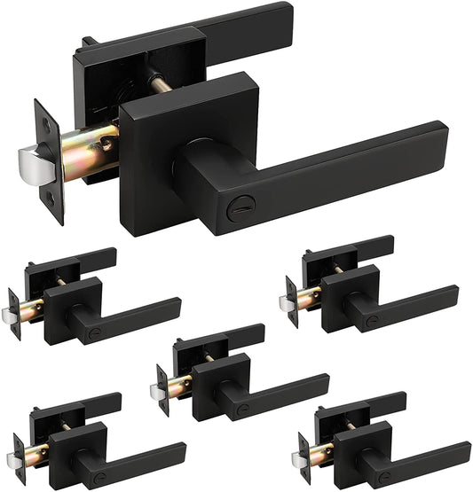 Probrico Heavy Duty Flat Black Square Privacy Interior Door Levers Bedroom and Bathroom Door Handles Keyless Bed/Bath Lockset (6 Pack)