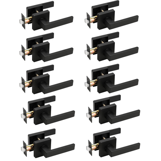 Probrico Flat Black Square Privacy Lock Interior Door Levers Bedroom & Bathroom Door Handles Keyless Lockset (10 Pack)