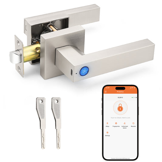 Probrico Satin Nickel Smart Lock Keyless Entry Door Lock with Handle Fingerprint Door Lock for Bedroom Bathroom