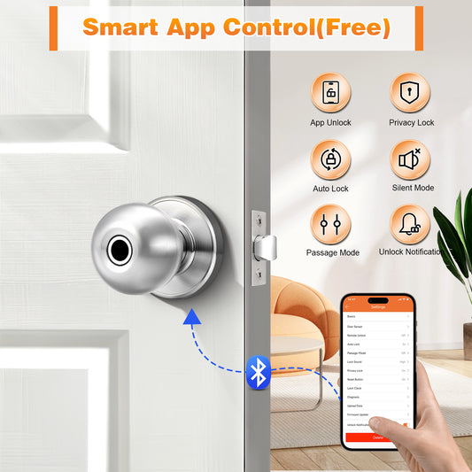 Probrico Satin Nickel Fingerprint Door Knob, Keyless Entry Smart Biometric Door Knob, Interior Door Knob with Fingerprint Lock