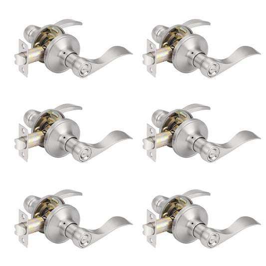 Probrico Privacy Door Levers Wave Style Handles Keyless Lock Bed Bath Door Lockset, Satin Nickel 6 Pack