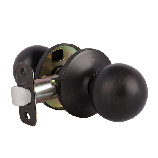 Round Ball Door Knobs Keyledd Passage Function for Closet Hall, Oil Rubbed Bronze Finish- DL5763ORBPS
