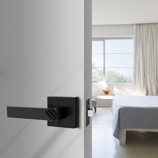 Rectangle Black Door Handles Heavy Duty Privacy Bedroom&Bathroom Door Lock Levers DL01BK