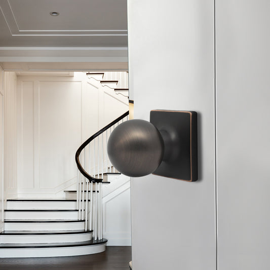 Round Ball Knob with Square Rosette, Interior Passage Door Knobs Oil Rubbed Bronze DLS07ORBPS