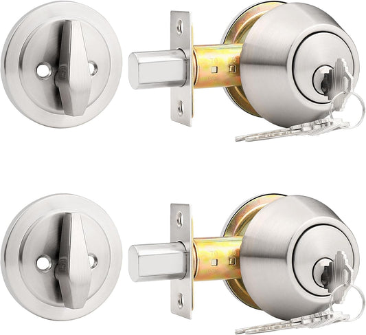 Single Cylinder Deadbolts Keyed Alike, Satin Nickel Finish