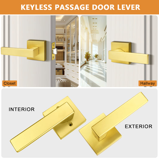 Gold Door Handles Heavy Duty Passage Levers for Closet Hallway DL01GDPS