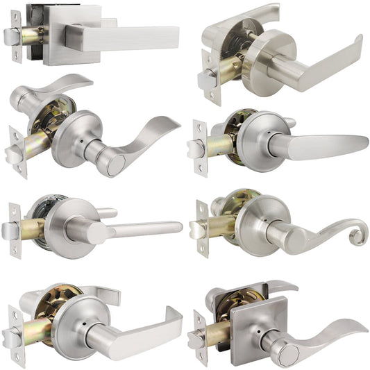 Probrico Privacy Bedroom and Bathroom Door Handles Satin Nickel Finish Door Levers 10 Packs