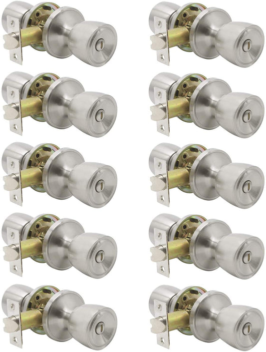 Probrico Satin Nickel Closet Hallway Passage Door Knob with Universal Latch 10 Packs