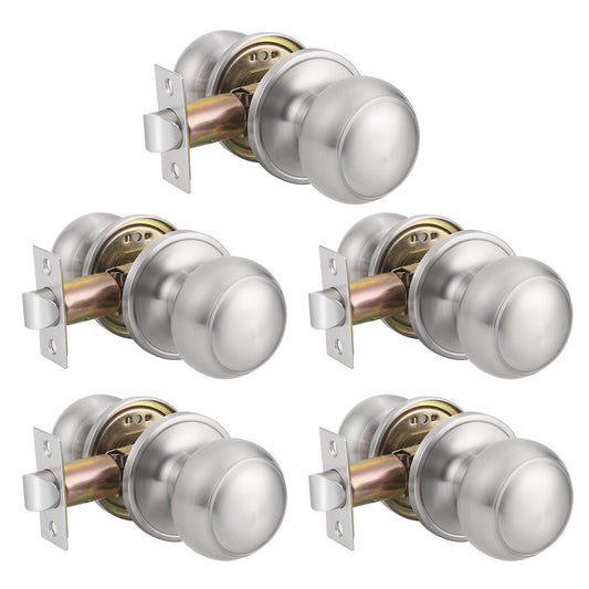 Probrico Satin Nickel Closet Hallway Passage Door Knob with Universal Latch 5 Packs