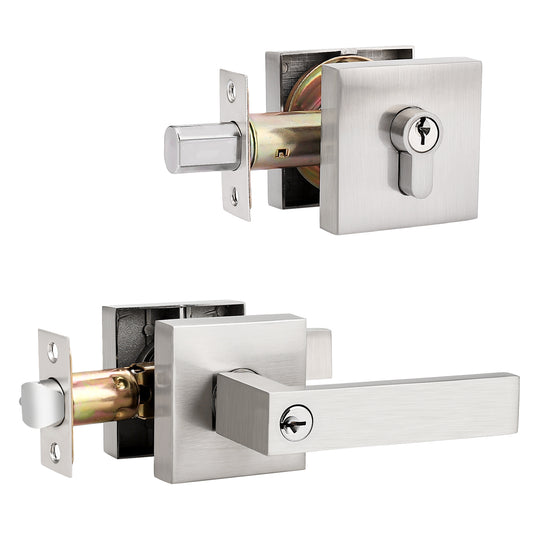 Keyed Entry Door Levers and Double Cylinder Deadbolts Locks Combo Pack (Keyed Alike), Satin Nickel Finish DL01ET-112SN
