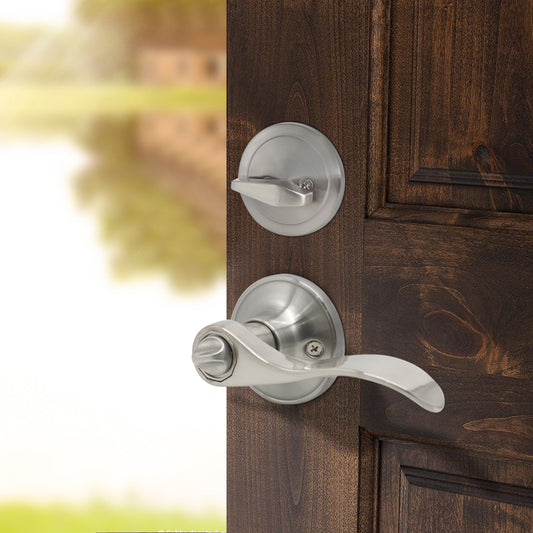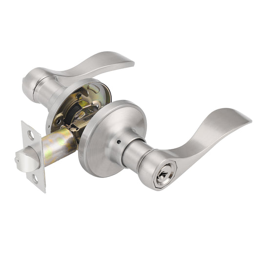 Wave Style Door Handle Keyed Entrance/Privacy/Passage/Dummy Door Lock Levers Satin Nickel Finish DL12061SN