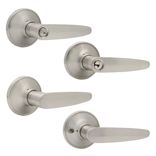 Interior Keyed Entry Door Lock Lever set, Brushed Nickel Door Handle DL01SNET