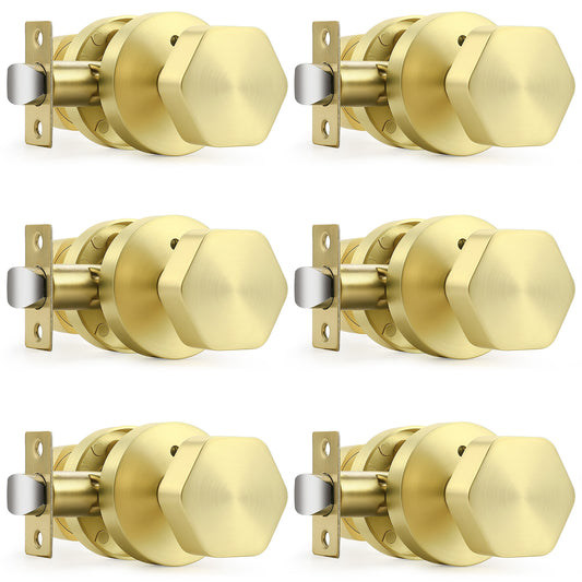 Probrico Brushed Brass Door Knobs, Gold Privacy Door Knob Interior, Hexagon Door Knobs for Bedroom Bathroom, 6 Pack