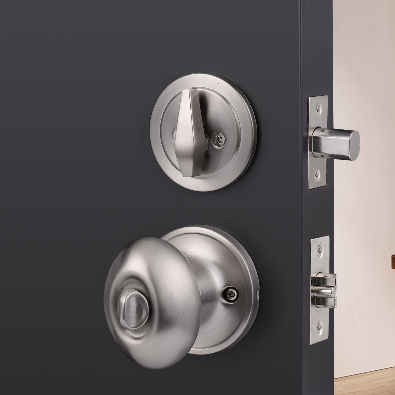 Probrico Door Knob and Double Cylinder Deadbolt, Brushed Nickel Exterior Door Deadbolt Lock Sets with Key, 1 Pack Deadbolt and Door Knob Set