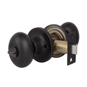 with lock function but keyless, you could locked inside, but can't open outside as there is no key. Usually used on interior doors where a privacy locking function is required, such as a bedroom/bathroom. Note: Opened with a Coin by an exterior emergency Coin Hole.